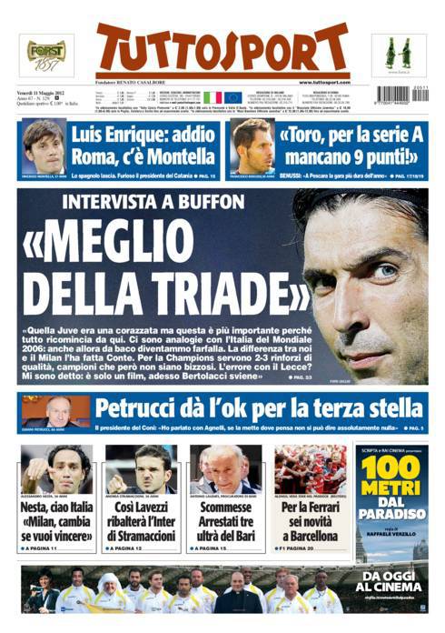 TUTTOSPORT TRIADE – Su Tuttosport intervista esclusiva a Buffon che elogia questa Juventus.