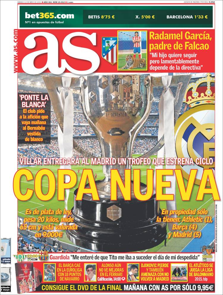 AS COPPA – Sul quotidiano As si parla della nuova Coppa per la vittoria della Liga che sarà alzata quest’oggi dal Real Madrid.