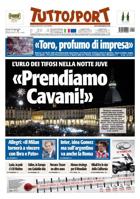 TUTTOSPORT CAVANI – Su Tuttosport si parla dei tifosi della Juventus che invocano Cavani.