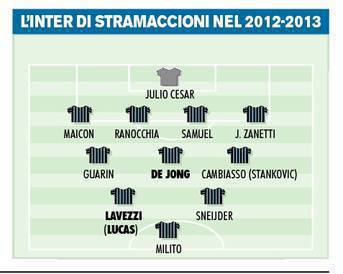 CALCIOMERCATO INTER FANTASIA STRAMACCIONI – Il calciomercato dell’Inter vuole regalare fantasia a Stramaccioni in vista della prossima stagione. I dirigenti nerazzurri sono pronti a consegnare al giovane tecnico romano una squadra dotata di molta fantasia soprattutto in attacco. Dietro alla punta Milito potrebbe esserci un duo composto da Lavezzi e Sneijder, oppure da Lucas e Sneijder. L’olandese dovrebbe clamorosamente restare visto che con Stramaccioni c’è grande sintonia. A centrocampo piace tantissimo De Jong del Manchester City, un centrocampista che l’Inter segue da molto vicino. L’Inter vuole divertire con la fantasia.