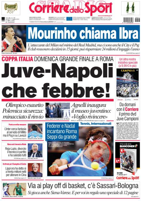 CORRIERE JUVENTUS NAPOLI – Sul Corriere dello Sport si parla del match tra Juventus e Napoli che prevede il tutto esaurito.