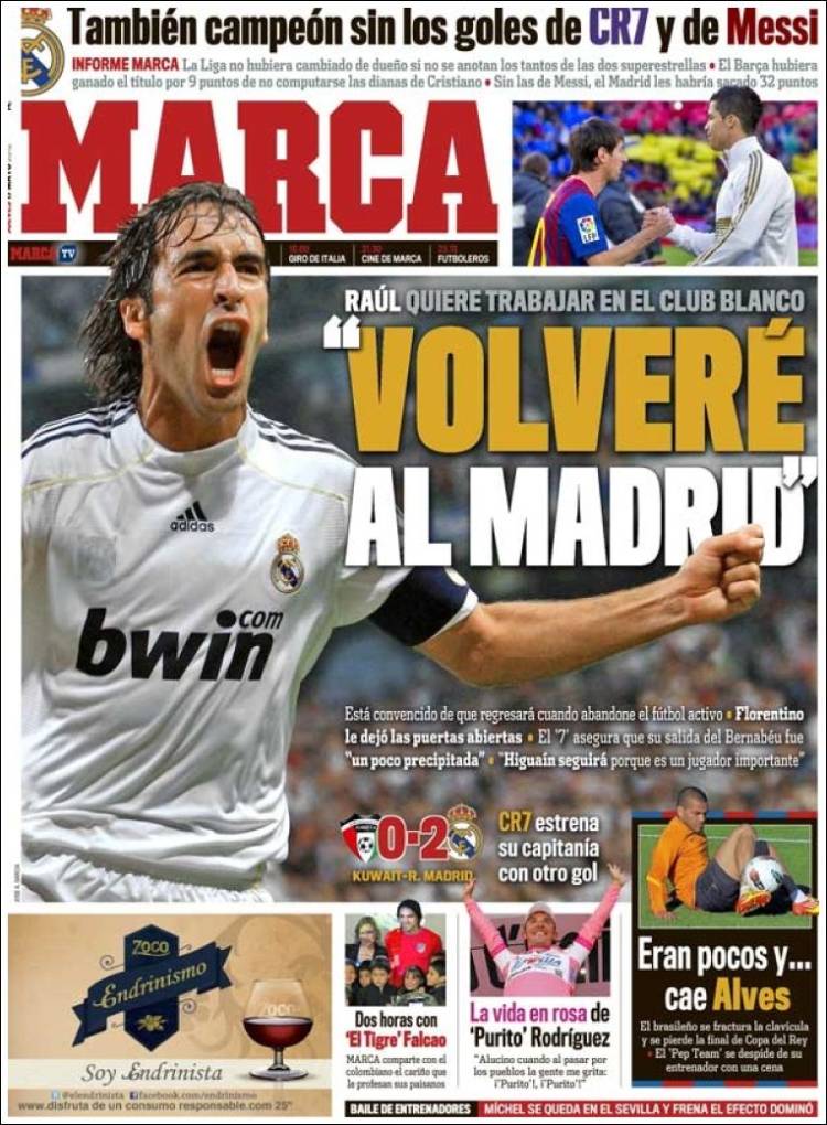 MARCA REAL MADRID RAUL – Sul quotidiano Marca si parla di Raul, leggenda del Real Madrid, che è pronto a tornare a lavorare come dirigente.