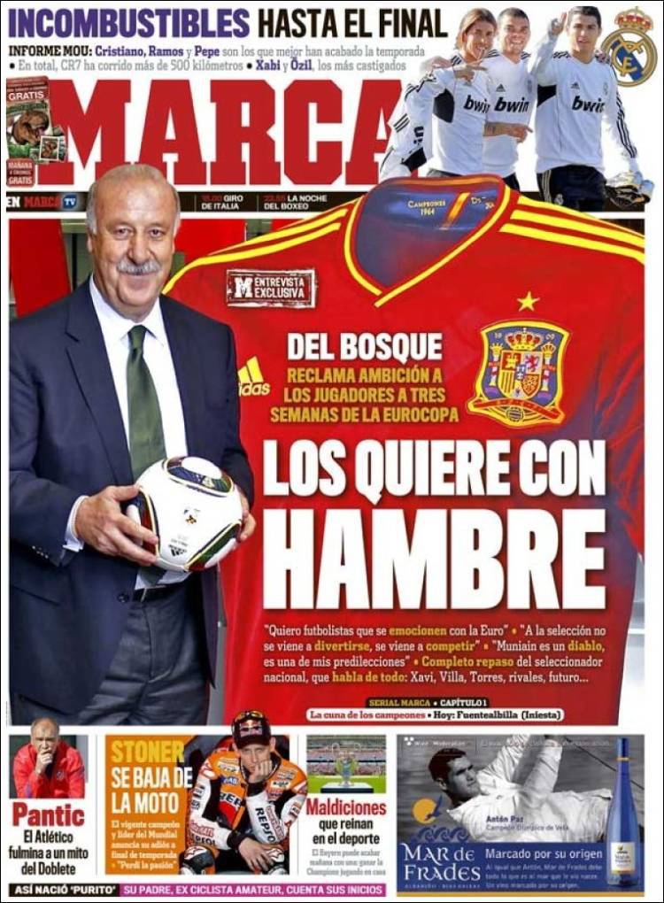 MARCA DEL BOSQUE – Sul quotidiano Marca si parla di Del Bosque che chiede ai giocatori della Spagna di essere affamati.