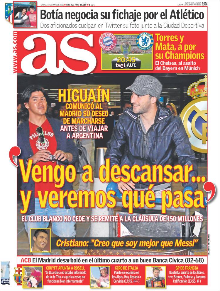 AS REAL MADRID – Sul quotidiano spagnolo As parla Higuain che parla del suo futuro.