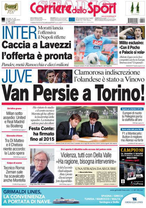CORRIERE INTER LAVEZZI – Sul Corriere dello Sport si parla invece del calciomercato dell’Inter che vuole puntare su Lavezzi.