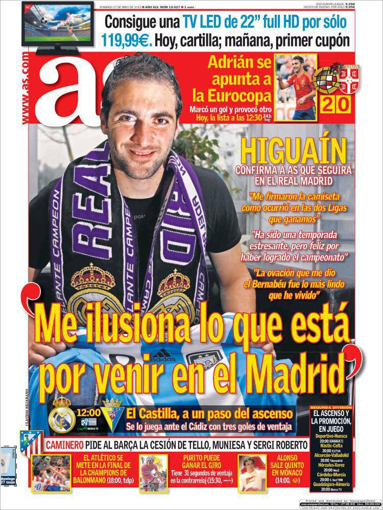 AS HIGUAIN – In un’intervista esclusiva lasciata al quotidiano Spagnolo AS, l’attaccante Gonzalo Higuain ha dichiarato di voler tornare a Madrid dopo le vacanze, chiudendo ad una cessione.