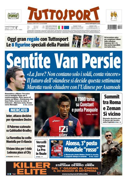 TUTTOSPORT VAN PERSIE – Su Tuttosport si parla di Van Persie, attaccante dell’Arsenal, che deve ancora decidere il proprio futuro.