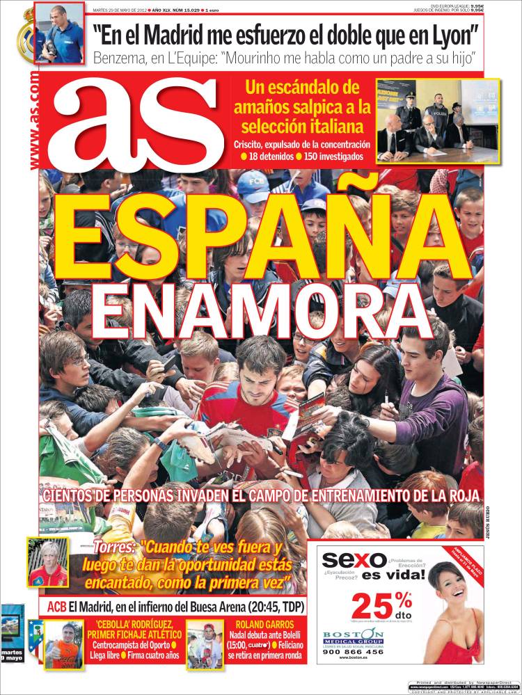 AS SPAGNA – Il quotidiano As parla dei tanti tifosi spagnoli che hanno invaso il campo di allenamento spagnolo.