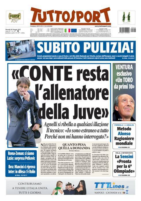 TUTTOSPORT CONTE JUVENTUS – Su Tuttosport si parla di Conte che ieri si è difeso dalle accuse per quanto riguarda il Calcioscommesse.