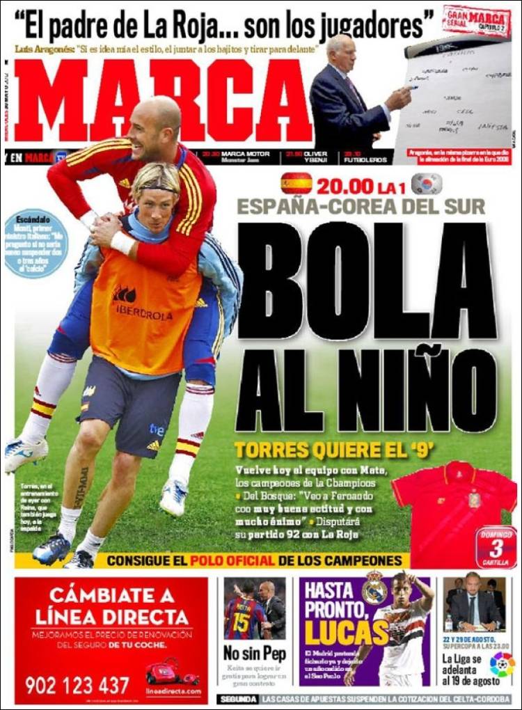 MARCA TORRES – Sul quotidiano Marca si parla dell’amichevole della Spagna contro la Corea del Sud con Torres titolare.