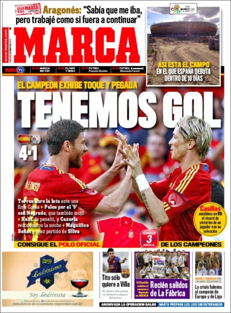 MARCA SPAGNA – Sul quotidiano Marca si parla della Spagna che vince quattro a uno contro la Corea del Sud.