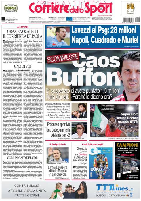 CORRIERE BUFFON – Anche il Corriere dello Sport parla del caos Buffon, sospettato di aver scommesso quasi 2 milioni di euro.