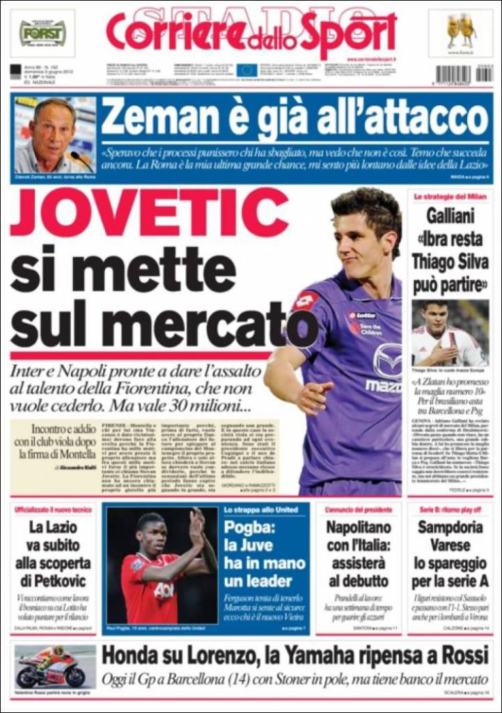 CORRIERE DELLO SPORT JOVETIC – Secondo quanto riportato stamani dal quotidiano Romano, il Corriere dello Sport, il talento della Fiorentina Stevan Jovetic, avrebbe chiesto di essere ceduto.