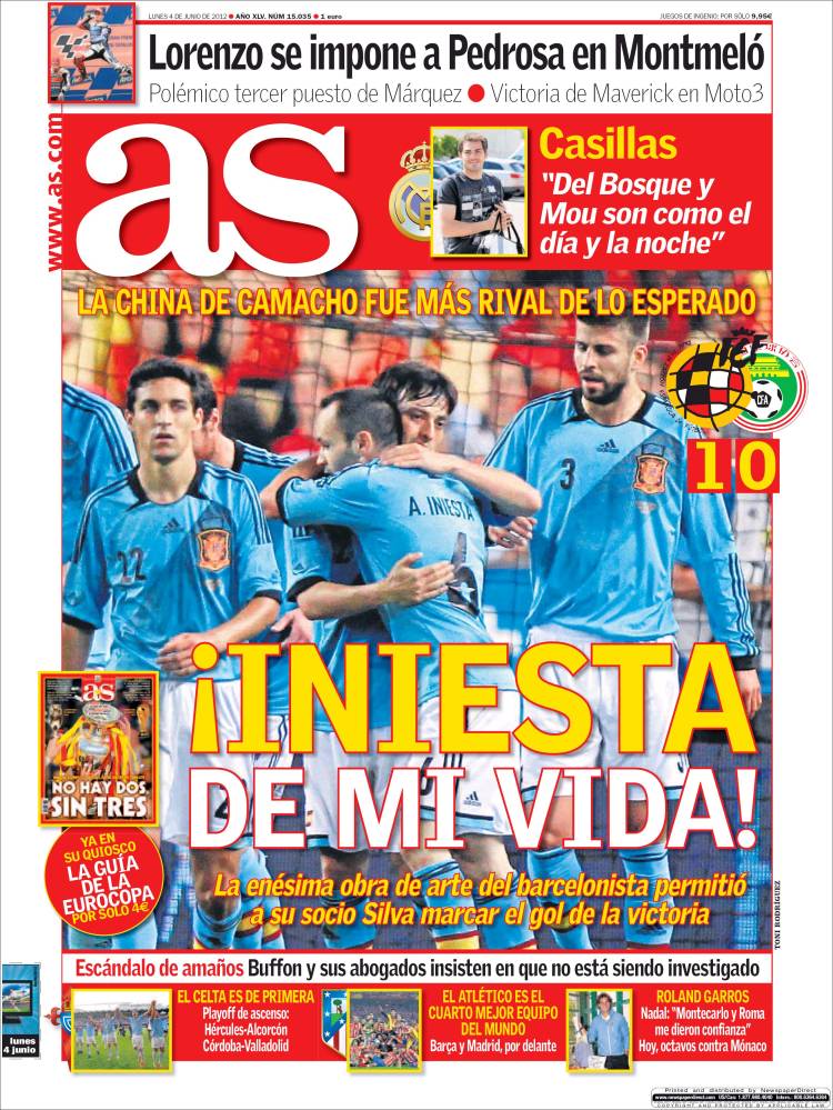 AS INIESTA – Titolo uguale per As, quotidiano spagnolo, che celebra Iniesta.