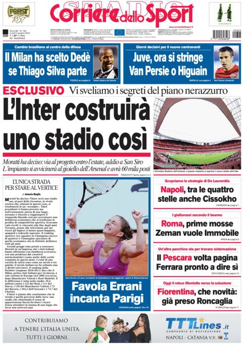 CORRIERE INTER – Sul Corriere dello Sport si parla del nuovo stadio dell’Inter che sarà simile a quello dell’Arsenal.