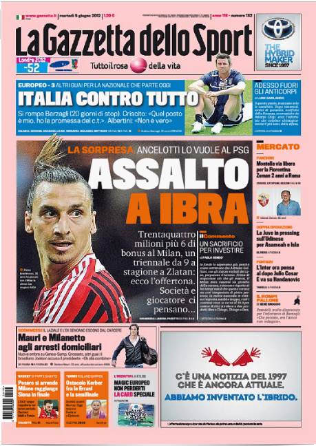 GAZZETTA IBRAHIMOVIC – Sulla Gazzetta dello Sport si parla dell’assalto a Ibrahimovic da parte del Psg.