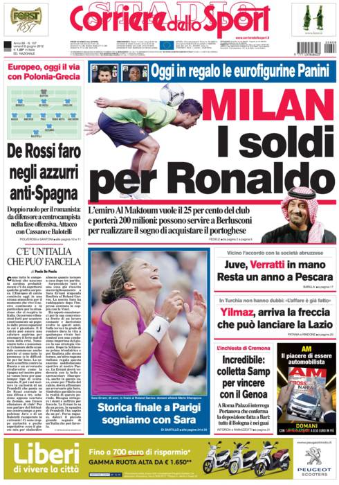 CORRIERE MILAN RONALDO – Lo sceicco Al Maktoum vuole il 25% del club rossonero ed è pronto a comprare Ronaldo.