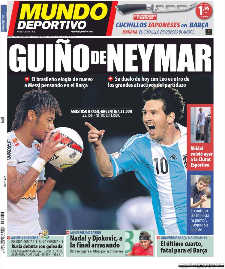 RASSEGNA STAMPA ESTERA EL MUNDO DEPORTIVO – El Mundo Deportivo dedica la prima pagina alla partita amichevole di questa sera tra Argentina e Brasile che vedrà l’uno di fronte all’altro Messi e Neymar. Il brasiliano, nel frattempo, incorona l’argentino: “Leo è il numero uno. Nessuno può essere paragonato a lui”.