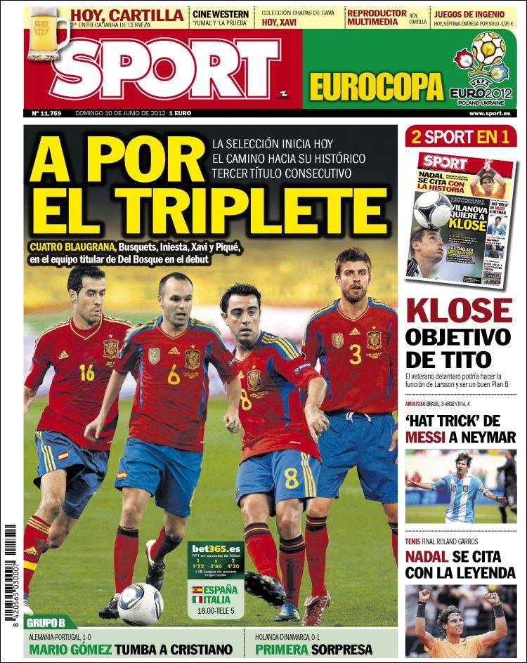 SPORT VERSO IL TRIPLETE – In Spagna ci si prepara per l’attesissimo di match di quest’oggi tra Spagna ed Italia. Gli Spagnoli, dopo la vittoria di Europeo e Mondiale, sognano di fare il “triplete” mettendo in fila il secondo Europeo di fila.