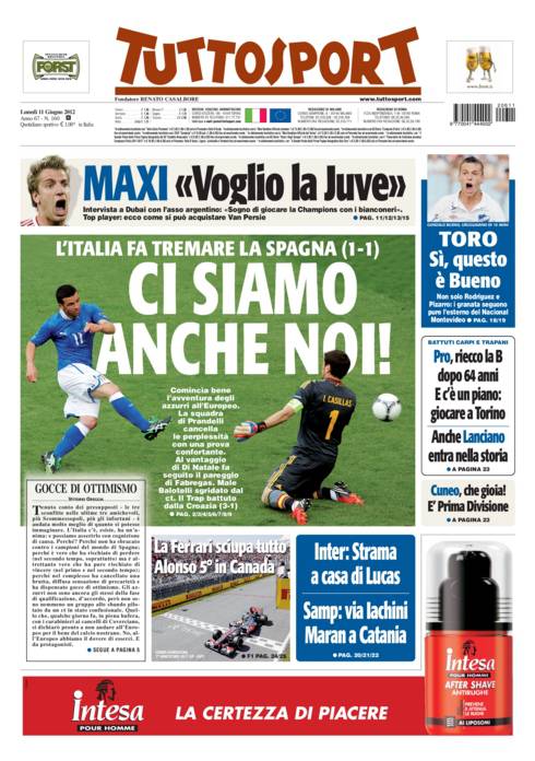 TUTTOSPORT ITALIA – Anche Tuttosport ha apprezzato la prestazione dell’Italia di Prandelli contro la Spagna.