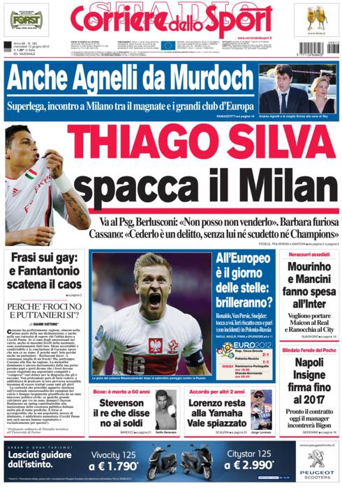 CORRIERE THIAGO SILVA – La cessione di Thiago Silva al Psg sta spaccando il Milan. Barbara Berlusconi furiosa con il padre.