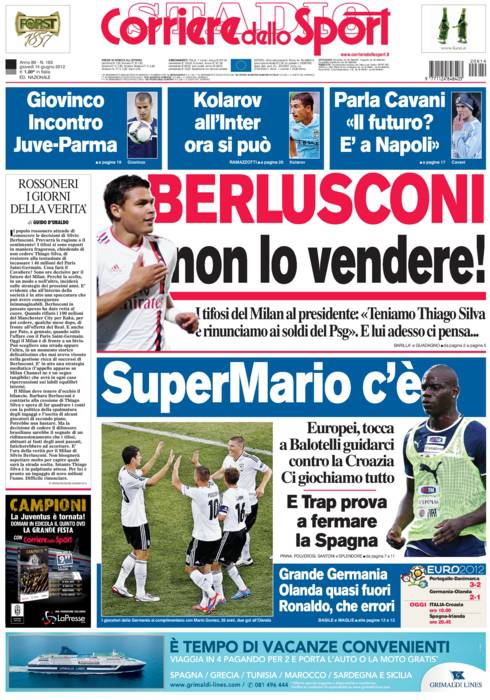 CORRIERE BERLUSCONI – Sul Corriere dello Sport si parla di Berlusconi che non vuole più vendere Thiago Silva.