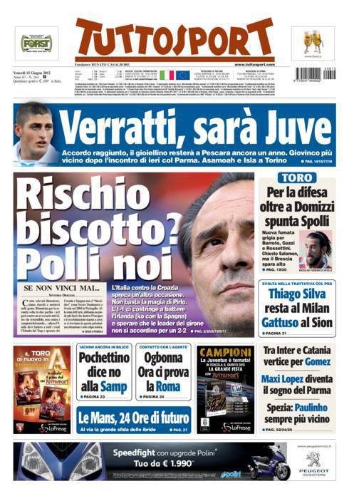 TUTTOSPORT ITALIA – Anche Tuttosport parla del possibile biscotto tra Croazia e Spagna ma la colpa è solo nostra.