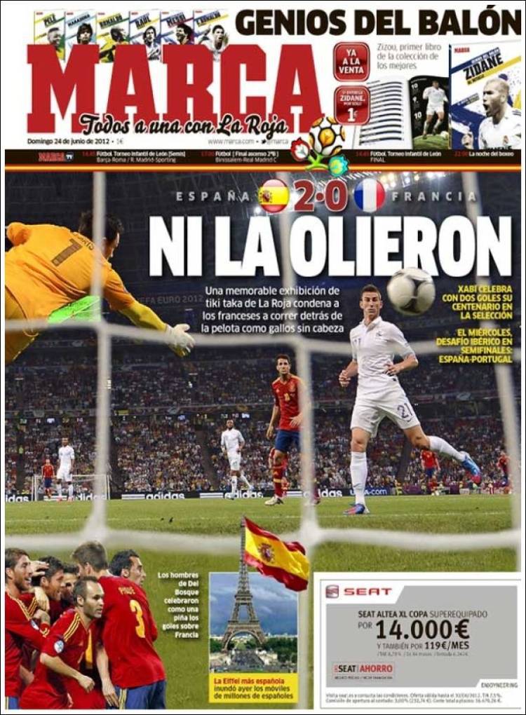 MARCA NI LA OLIERON – Una grande prestazione quella della Spagna che ieri sera ha annientato la formazione francese grazie ad una doppietta di Xabi Alonso.
