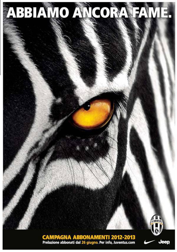 JUVENTUS ABBONAMENTI – Di seguito potete ammirare la campagna pubblicitaria, a nostro avviso spettacolare, riguardante gli abbonamenti Juventus per la prossima stagione. La società di corso Galileo Ferraris ha voluto utilizzare lo sguardo determinato e intimidatorio di una zebra, il “simbolo” del club, con la scritta “Abbiamo ancora fame”. Dopo la vittoria dello scudetto e la finalissima di Coppa Italia la Vecchia Signora ha quindi ancora voglia di grandi successi e vuole appunto trasmetterla ai suoi fedelissimi tifosi.