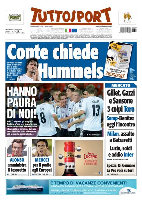 TUTTOSPORT CONTE HUMMELS – Su Tuttosport si parla del mercato della Juventus con Conte che chiede Hummels per la difesa.