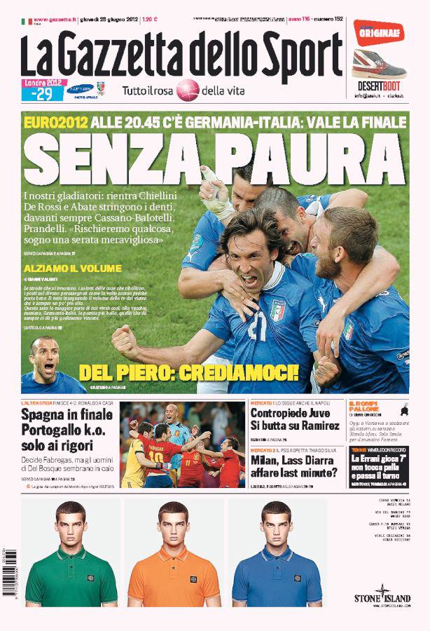 GAZZETTA ITALIA GERMANIA – Sulla Gazzetta dello Sport si parla di Italia-Germania, semifinale degli Europei.