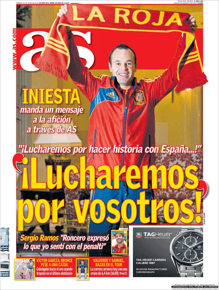 AS INIESTA – Sul quotidiano As si parla di Iniesta che dichiara battaglia all’Italia.