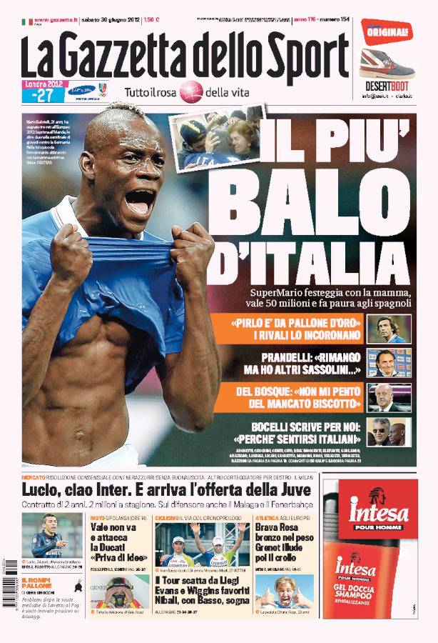 GAZZETTA BALOTELLI – La Gazzetta dello Sport incorona Balotelli e lo spinge a essere decisivo contro la Spagna.