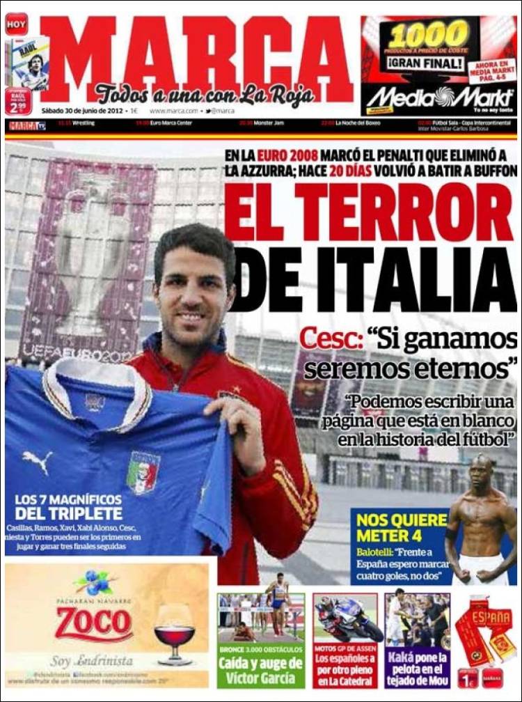 MARCA ITALIA – Fabregas è la bestia nera dell’Italia. Venti giorni fa fu lui a pareggiare il gol di Di Natale.