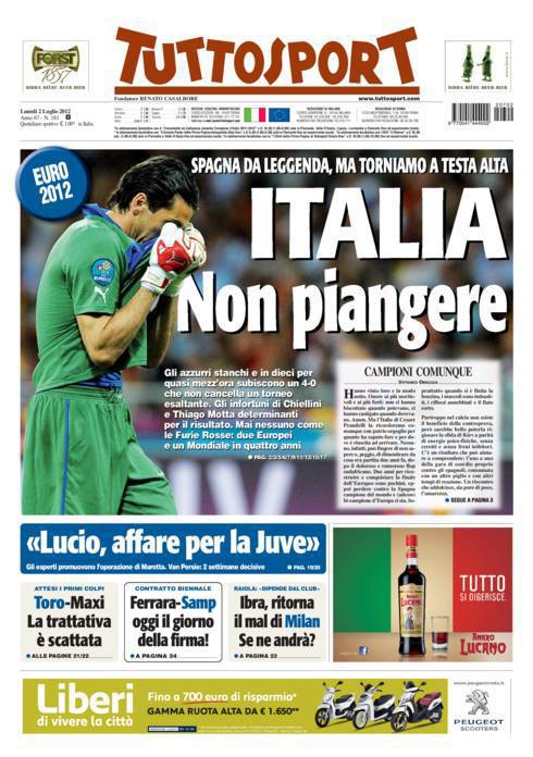 TUTTOSPORT ITALIA – Su Tuttosport si parla dell’Italia che perde quattro a zero contro la Spagna.