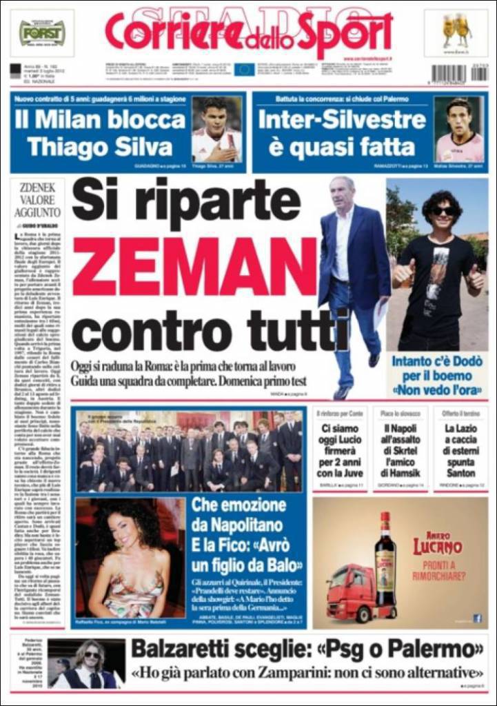 CORRIERE DELLO SPORT ZEMAN – La prima squadra a radunarsi è la Roma che quest’oggi inizia la sua preparazione in vista della prossima stagione. Il ritorno nel calcio che conta di Zeman, smuoverà gli equilibri?