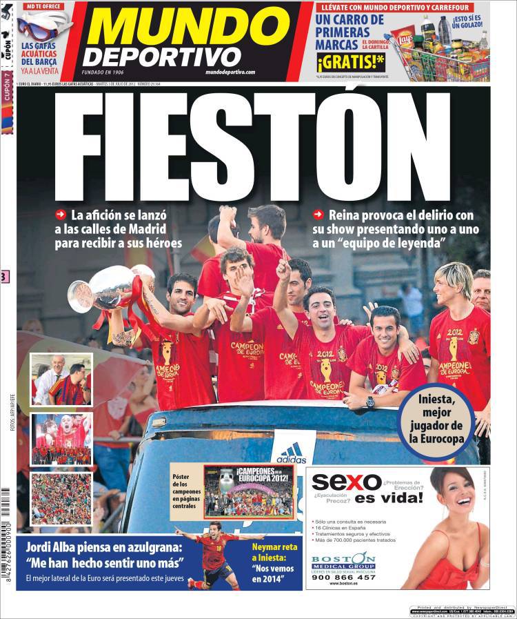 MUNDO DEPORTIVO GRANDE FESTA – Grandi festeggiamenti in Spagna per il ritorno dei campioni d’Europa, festeggiati da un’intera nazione.