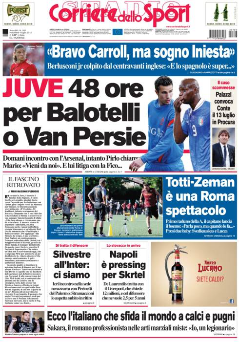 CORRIERE BALOTELLI VAN PERSIE – Il Corriere dello Sport parla dell’acquisto della Juventus per l’attacco.