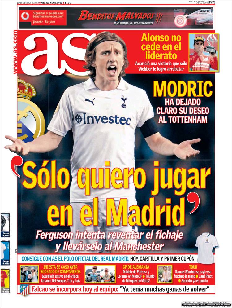 AS REAL MADRID – Sul quotidiano As si parla di Modric che vuole giocare nel Real Madrid.