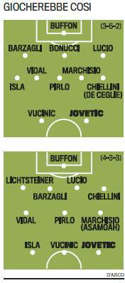 CALCIOMERCATO JUVENTUS JOVETIC MODULI – La Juventus ha deciso di puntare forte su Stevan Jovetic, attaccante montenegrino della Fiorentina, classe 89′ che è entrato nella top lista del mercato bianconero. Conte potrebbe utilizzare Jovetic in due modi. L’abilità sotto porta mostrata in questa stagione, ha portato Jovetic a essere considerato un attaccante. Conte potrebbe confermare nella prossima stagione il 3-5-2, un modulo che ha portato al successo la Juventus che ha vinto lo Scudetto. In questo caso Jo-Jo giocherebbe accanto a Vucinic per un attacco tecnico. Nel 4-3-3 invece Jovetic giocherebbe largo a sinistra, con Isla a destra e Vucinic centrale. Ecco la foto della Gazzetta dello Sport.