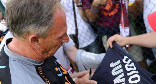 SERIE A ROMA JUVENTUS ZEMAN – Dopo le prime dichiarazioni di Zeman sulla Juventus da nuovo allenatore della Roma, il tecnico boemo, nella giornata di ieri, a Riscone di Brunico, ha concesso un autografo speciale. Alla fine della partita contro la rappresentativa della Val Pusteria un tifoso romanista gli porge la maglia, lui senza battere ciglio l’autografa. Il fatto che ci sia scritto «Odio la juve», è un dettaglio. La foto ha fatto subito il giro del web suscitando il disappunto dei sostenitori bianconeri. Si tratta della seconda frecciata alla Juventus, a sole 24 ore di distanza dalla battuta di sabato sugli scudetti vinti: «Per me 28 sono anche troppi», aveva detto Zeman.