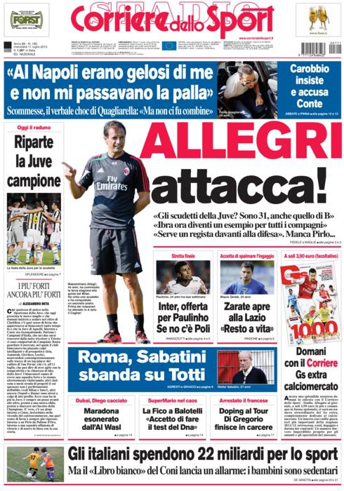 CORRIERE ALLEGRI – Sul Corriere dello Sport vengono riportate le dichiarazioni di Allegri, tecnico del Milan, che parla degli Scudetti del Milan.