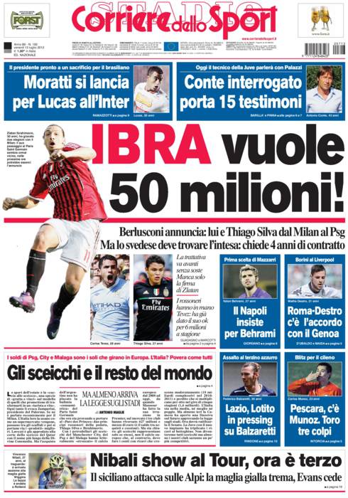 CORRIERE IBRAHIMOVIC – Sul Corriere dello Sport si parla di Ibrahimovic che chiede al Psg un contratto da 4 anni per un totale di 50 milioni di euro.