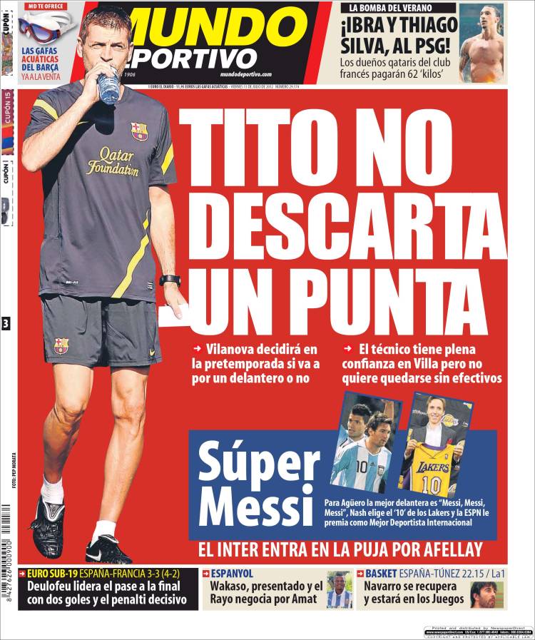 MUNDO DEPORTIVO TITO VILANOVA – Il tecnico del Barcellona Vilanova potrebbe anche chiedere una punta per l’attacco.