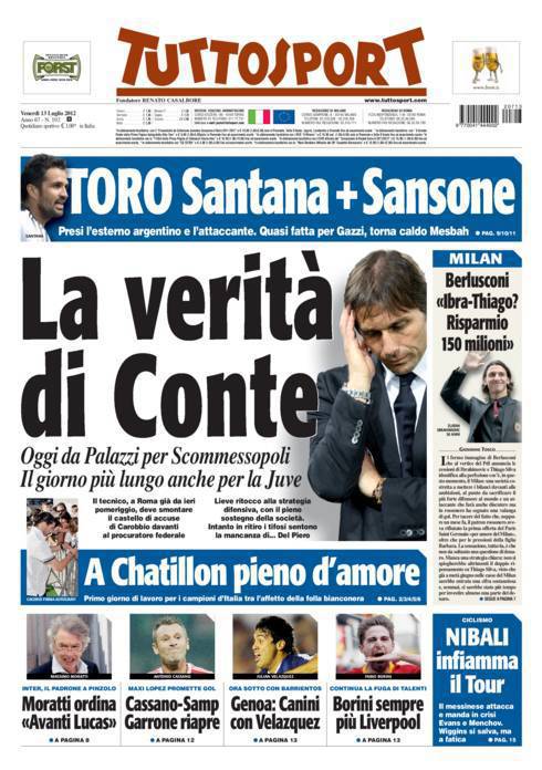 TUTTOSPORT CONTE – Su Tuttosport si parla di Conte che oggi verrà interrogato per Scommessopoli.