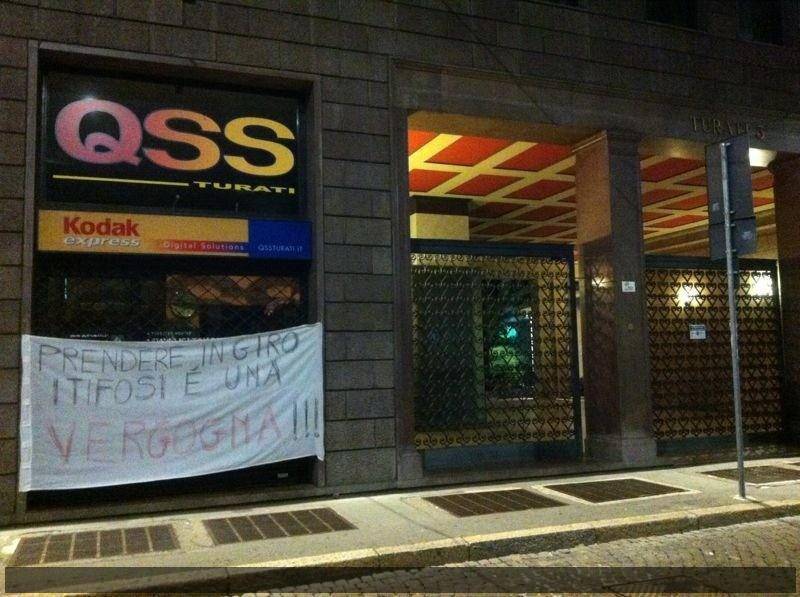 CALCIOMERCATO MILAN THIAGO SILVA IBRAHIMOVIC / Nessuna protesta ieri a Milanello da parte dei tifosi milanisti in vista delle cessioni di Ibrahimovic e Thiago Silva. Presumibilmente perché l’ufficialità è arrivata poco prima della conclusione dell’allenamento. In circa 500, i tifosi ieri a Milanello hanno semplicemente esposto uno striscione quantomeno eloquente: “Senza Thiago dove andiamo… Senza Ibra non c’è sfida“, ma durante la sera di ieri è apparso davanti alla sede un altro striscione: “Prendere in giro i tifosi è una vergogna“. Di seguito la foto.