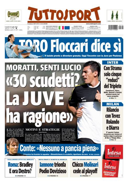 TUTTOSPORT MORATTI – Ovviamente Tuttosport non poteva non rimarcare la frase di Lucio, difensore brasiliano, che ha parlato della storia degli Scudetti.