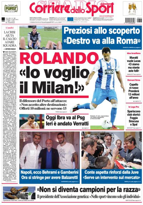 CORRIERE ROLANDO MILAN – Il Corriere dello Sport parla della richiesta di Rolando, difensore portoghese, che vuole vestire la maglia del Milan.