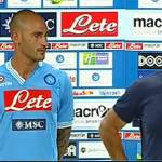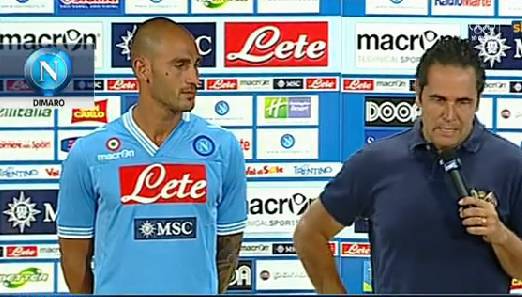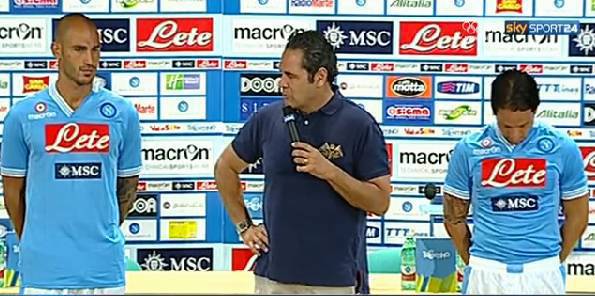 NUOVA MAGLIA NAPOLI – Il Napoli ha presentato ufficialmente, pochi minuti fa, la nuova maglia per la stagione 2012-2013. Svelata solamente la prima casacca mentre per la seconda e la terza bisognerà attendere i prossimi giorni. Una divisa interamente d’azzurro, come di consueto, con alcune novità stilistiche particolari. Interessante, ad esempio, il colletto che ha studiato la Macron, che appare asimettrico, da una parte a righe bianco e blu e dall’altra completamente azzurro. Un colletto a V incastonato fra il logo della Coppa Italia, lo sponsor tecnico e il simbolo del Napoli. Più in basso, invece, campeggiano i due classici sponsor Acqua Lete e MSC Crociere.
