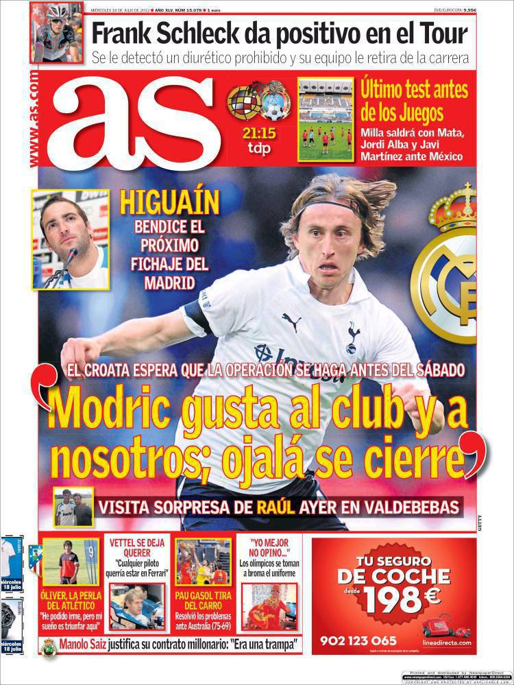 As: Higuain “Modric piace al club e a tutti noi…” 18/07/2012 di admin AS HIGUAIN – Il bomber del Real Madrid Higuain benedice l’arrivo di Modric. La redazione di Calciomercatonews.com